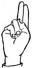 На ћирилици написано АНТОНИНА ДЕДИНАЦ састоји се из 15 слова [?]. Исписано ћириличном једноручном азбуком за глувонеме: